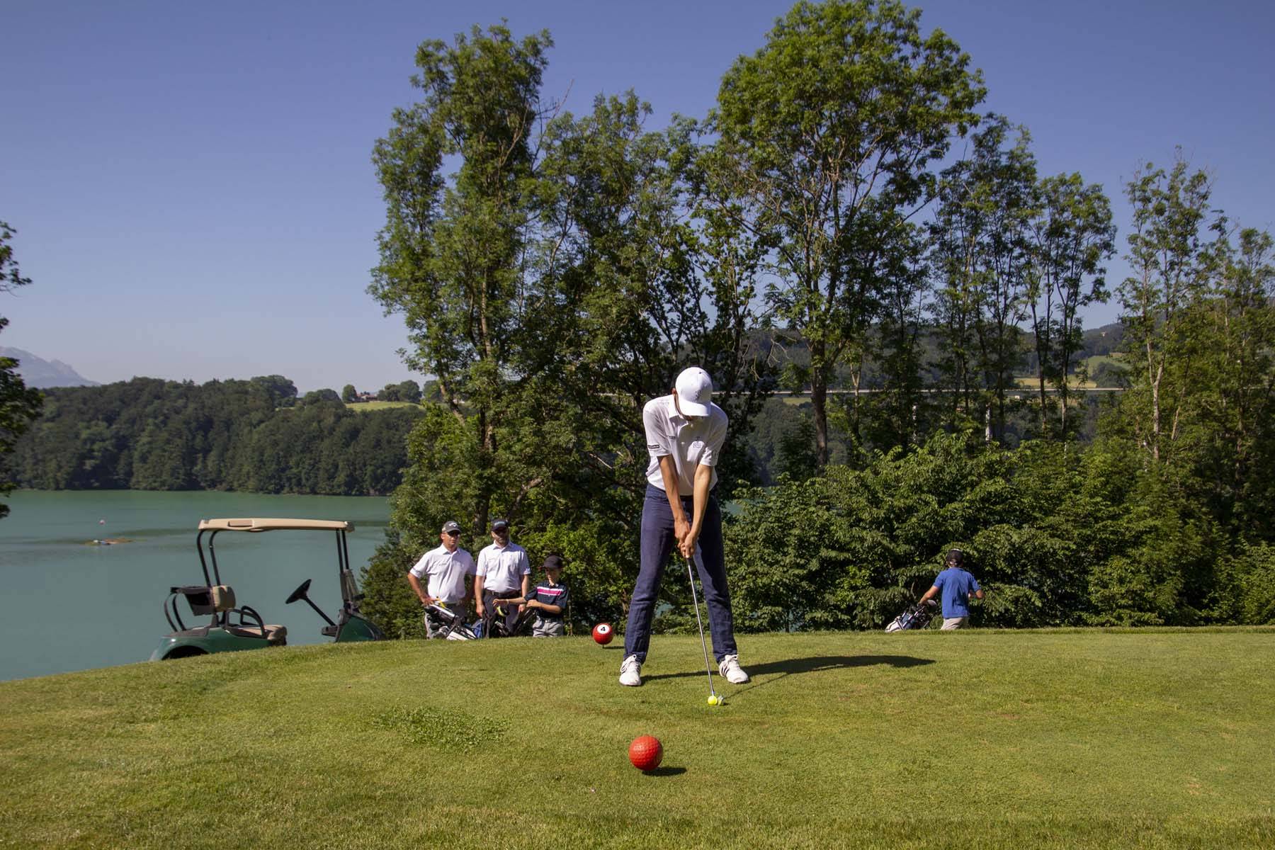 Un swing de 30m dans l’herbe pour 10m dans le sable (sensation) donc environ 3x la longueur nécessaire.
